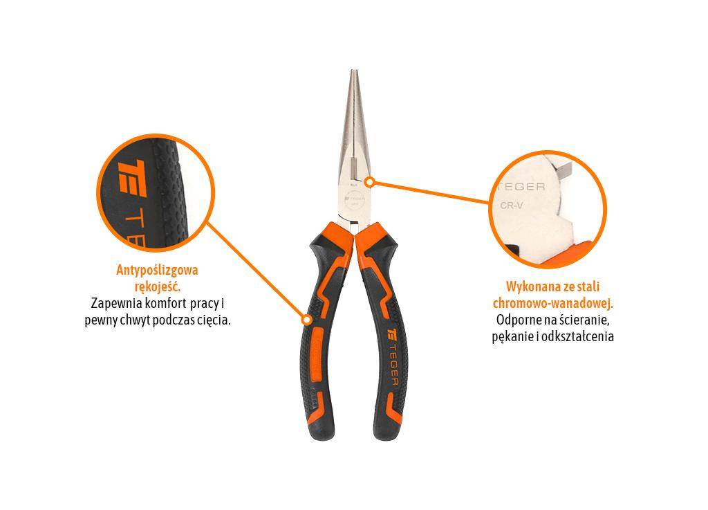 Szczypce wydłużone – proste 160 mm / teger przeznaczone do przytrzymywania, kształtowania i cięcia elementów. Ułatwiają pracę w trudno