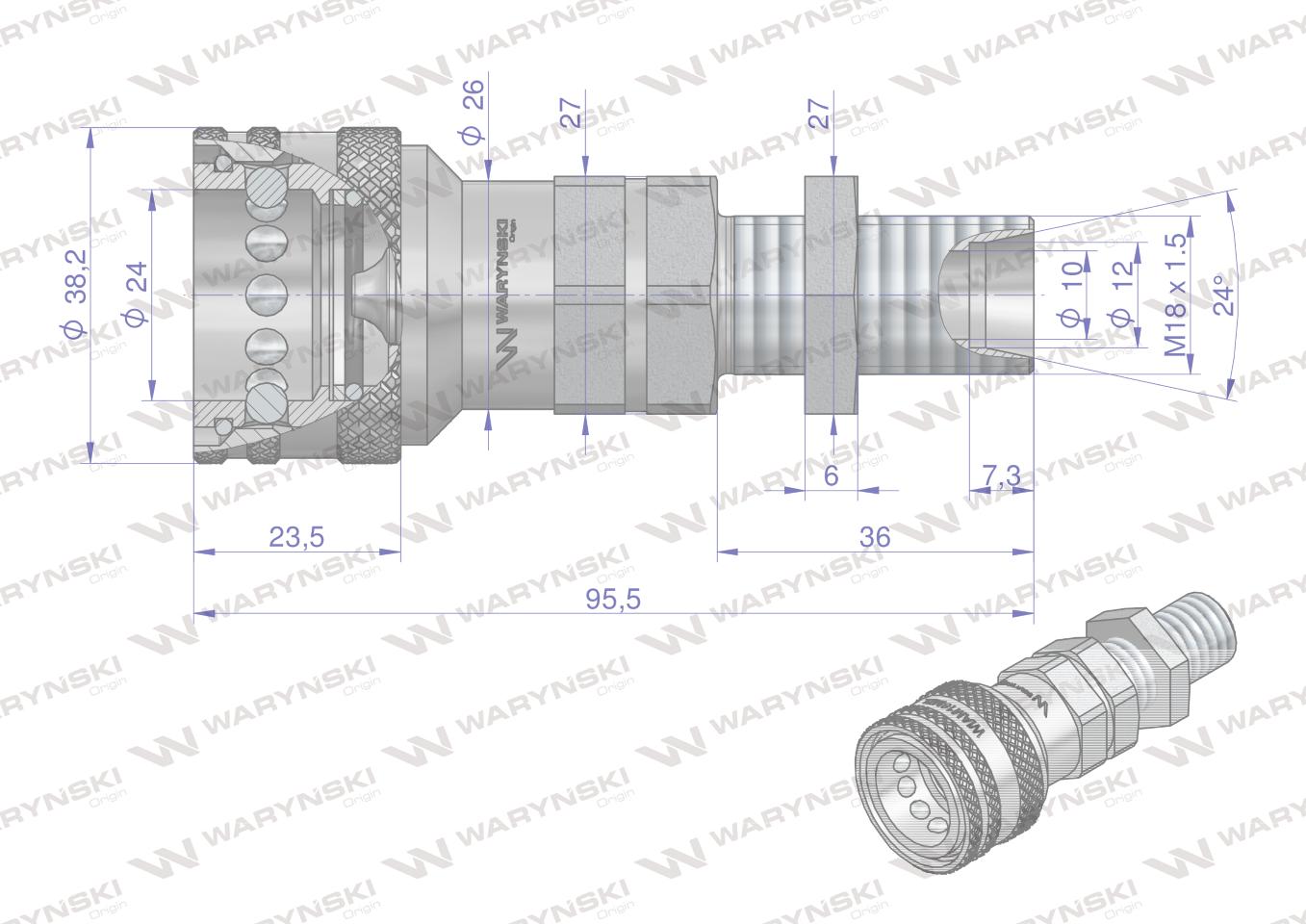 Szybkozłącze hydrauliczne gniazdo long m18x1.5 gwint zewnętrzny euro 9100818gl iso 7241-a waryński opakowanie 10szt)