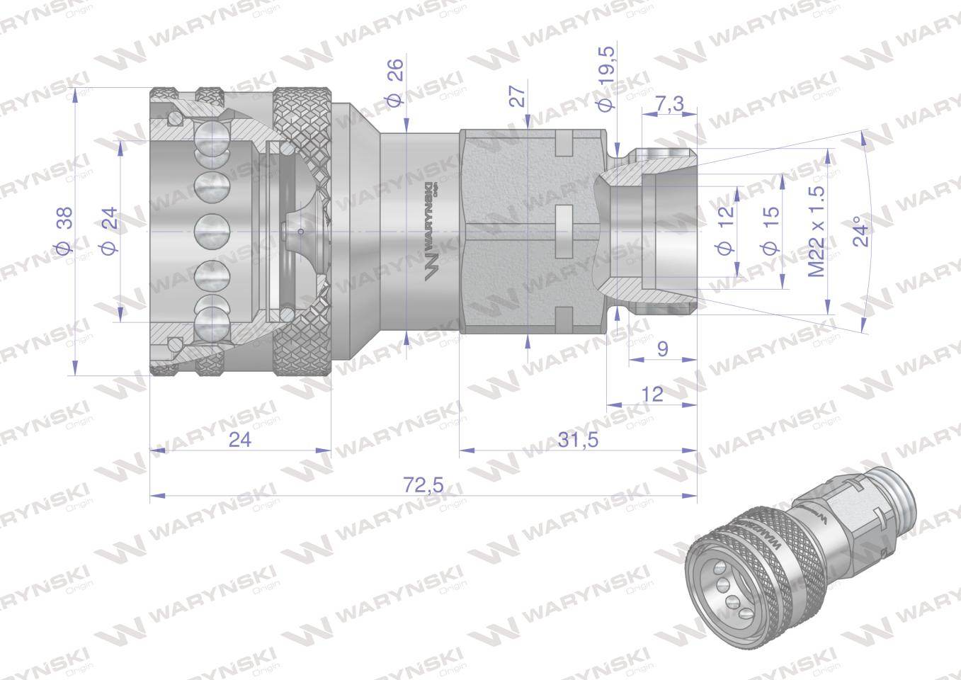 Szybkozłącze hydrauliczne gniazdo z eliminatorem ciśnienia m22x1.5 gwint zewnętrzny euro 9100822g iso 7241-a waryński