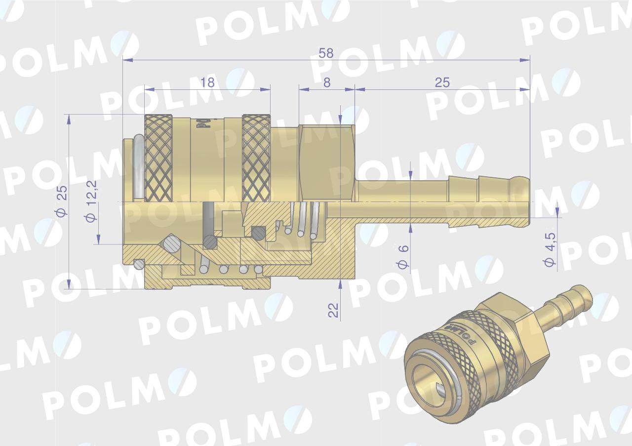 Szybkozłącze pneumatyczne p26 nw7.2 gniazdo pod wąż dn06mm polmo – najpopularniejsze szybkozłącza mosiężne o bardzo szerokim spektrum zastosowań. Szybkozłącza zaprojektowane są zgodnie z wymogami wymiarowymi i jakościowymi zgodnymi ze standardowym profilem euro, który określa szczegółowo charakterystykę i wymiary. Kompatybilność szybkozłączy produkowanych przez różnych producentów zgodnie z tym standardem. Zamienne z szybkozłączami serii p26 z: rectus, cejn i innych.