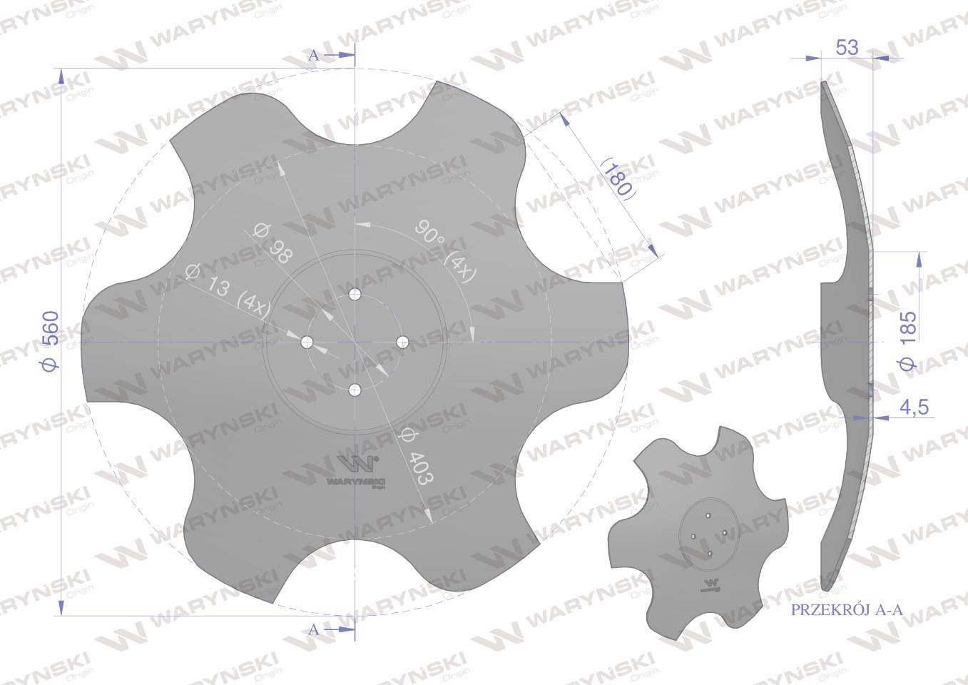 Talerz, skrajny prawy fi 560 mocowanie 4/98 grubość 4,5mm stal borowa, waryński