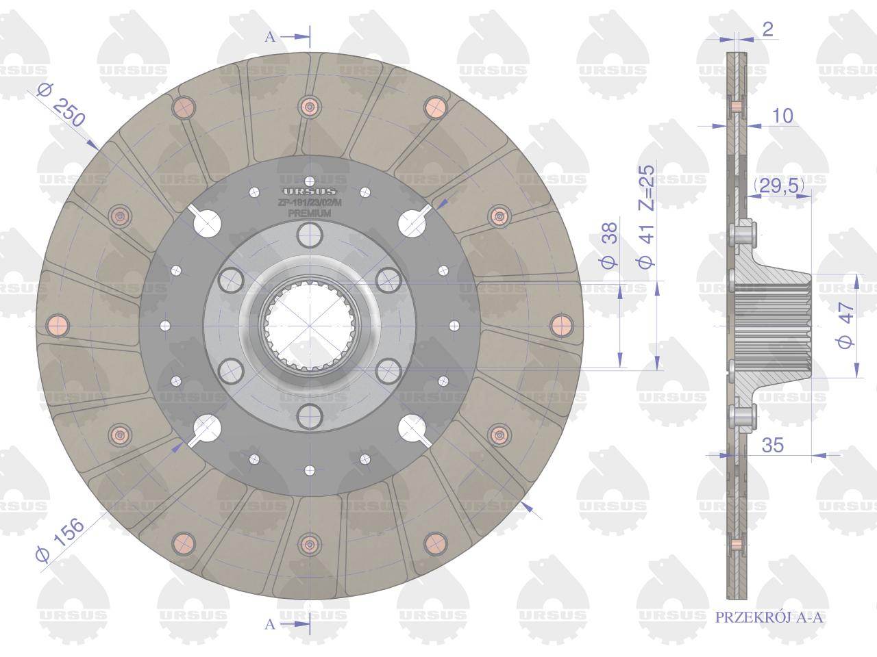 Tarcza sprzęgłowa w marce ursus to produkt najwyższej jakości. Tarcza sprzęgłowa jest jednym z najważniejszych elementów układu przeniesienia napędu. Odpowiada za przekazanie momentu obrotowego z koła zamachowego na wałek sprzęgłowy skrzyni biegów. Jednym z zadań tarczy sprzęgła jest również redukcja i tłumienie drgań przenoszonych obciążeń. Tarcza sprzęgłowa premium wyróżnia się dłuższą żywotnością zwiększoną o 30%, posiada zwiększoną liczbę nitów piasty, zostały również zmienione nity okładziny z aluminiowych na miedziane. Okładzina posiada więcej włókien, które wydłużają jej żywotność.