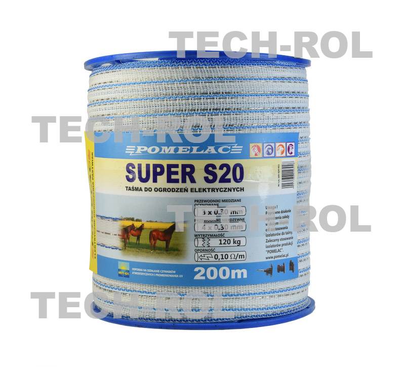 Taśma biało-niebieska SUPER S-20mm 200m do ogrodzenia elektrycznego; 105-020-011 Pomelac