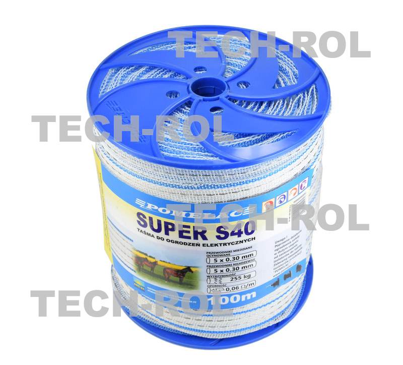 Taśma biało-niebieska SUPER S-40mm 100m do ogrodzenia elektrycznego