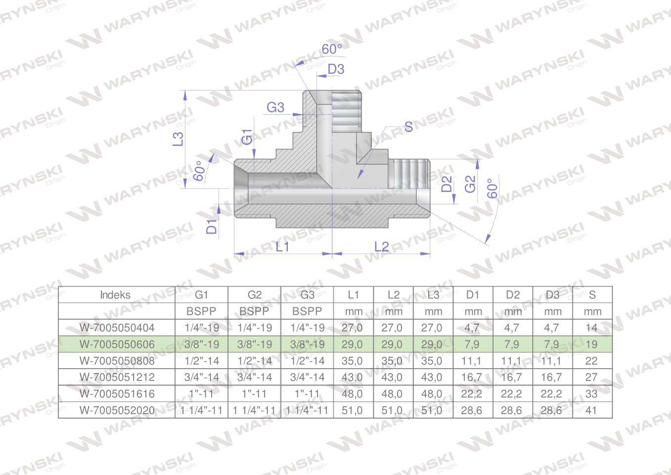 Trójnik hydrauliczny calowy bbb 3/8″ bsp xt waryński