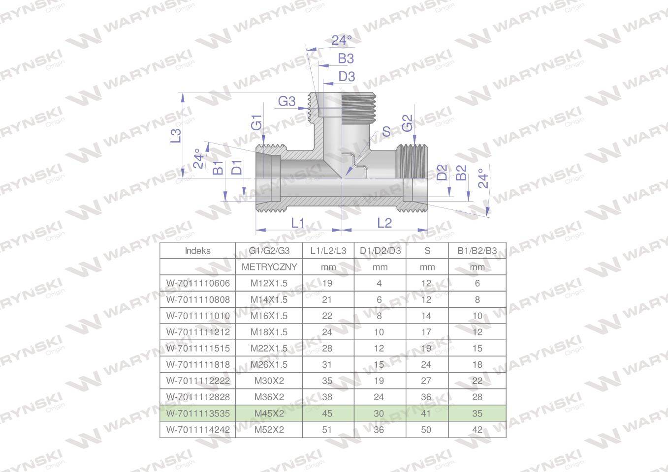 Trójnik hydrauliczny metryczny bbb m45x2 35l xt waryński