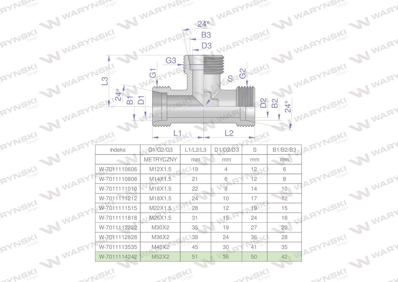 Trójnik hydrauliczny metryczny bbb m52x2 42l xt waryński
