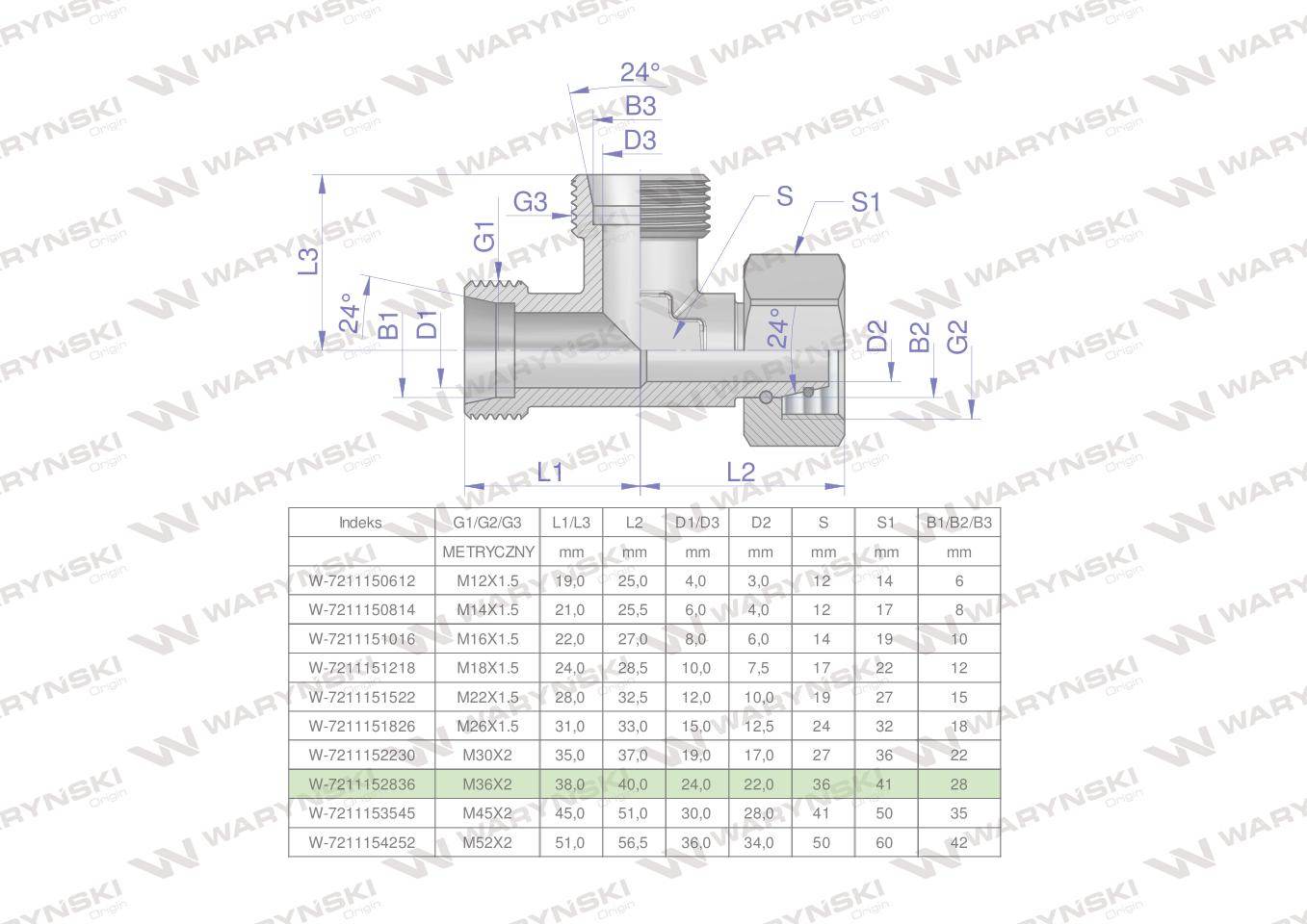 Trójnik hydrauliczny niesymetryczny metryczny bba m36x2 28l xevl waryński