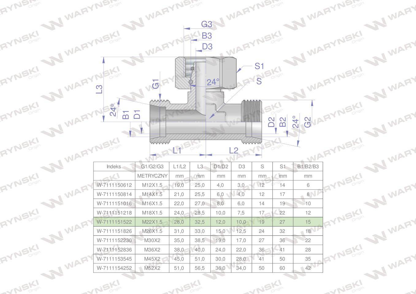 Trójnik hydrauliczny symetryczny metryczny bab m22x1.5 15l xevt waryński 5szt