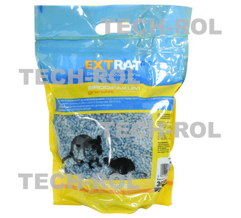 Trutka na myszy i szczury, granulat 1,5 kg, brodifakum, Extrat – niezastąpione narzędzie w walce z gryzoniami, oferując skuteczną eliminację po jednorazowym spożyciu. Dzięki opóźnionemu działaniu, gryzonie nie kojarzą przynęty z negatywnymi konsekwencjami, co zwiększa efektywność produktu. Skuteczny, i łatwy w użyciu, Extrat gwarantuje kontrolę nad populacją gryzoni – to doskonały wybór dla rolników i hodowców zwierząt gospodarskich.