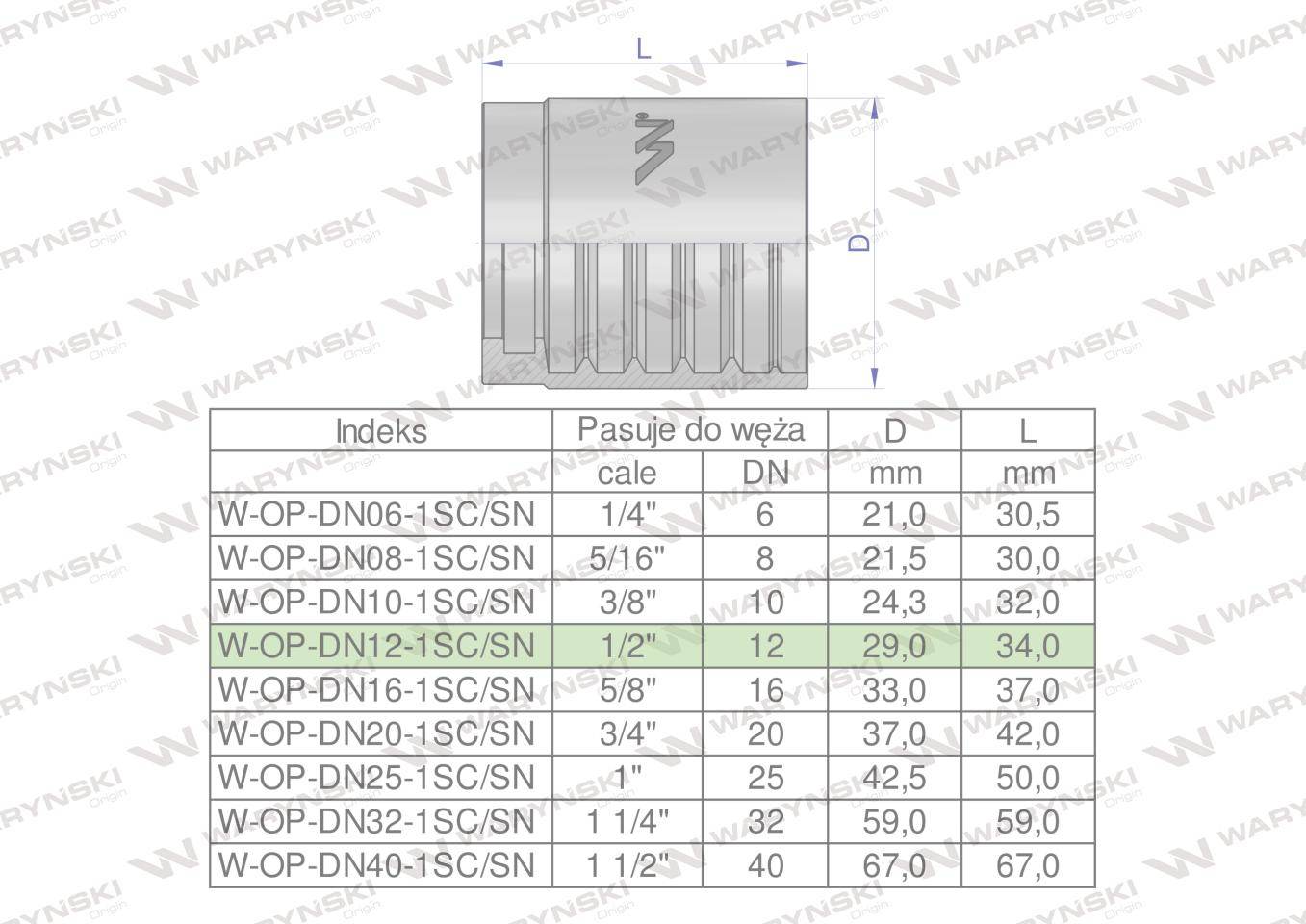 Tuleja (oprawka) dn 12 1sn do węży i zakuć hydraulicznych premium waryński