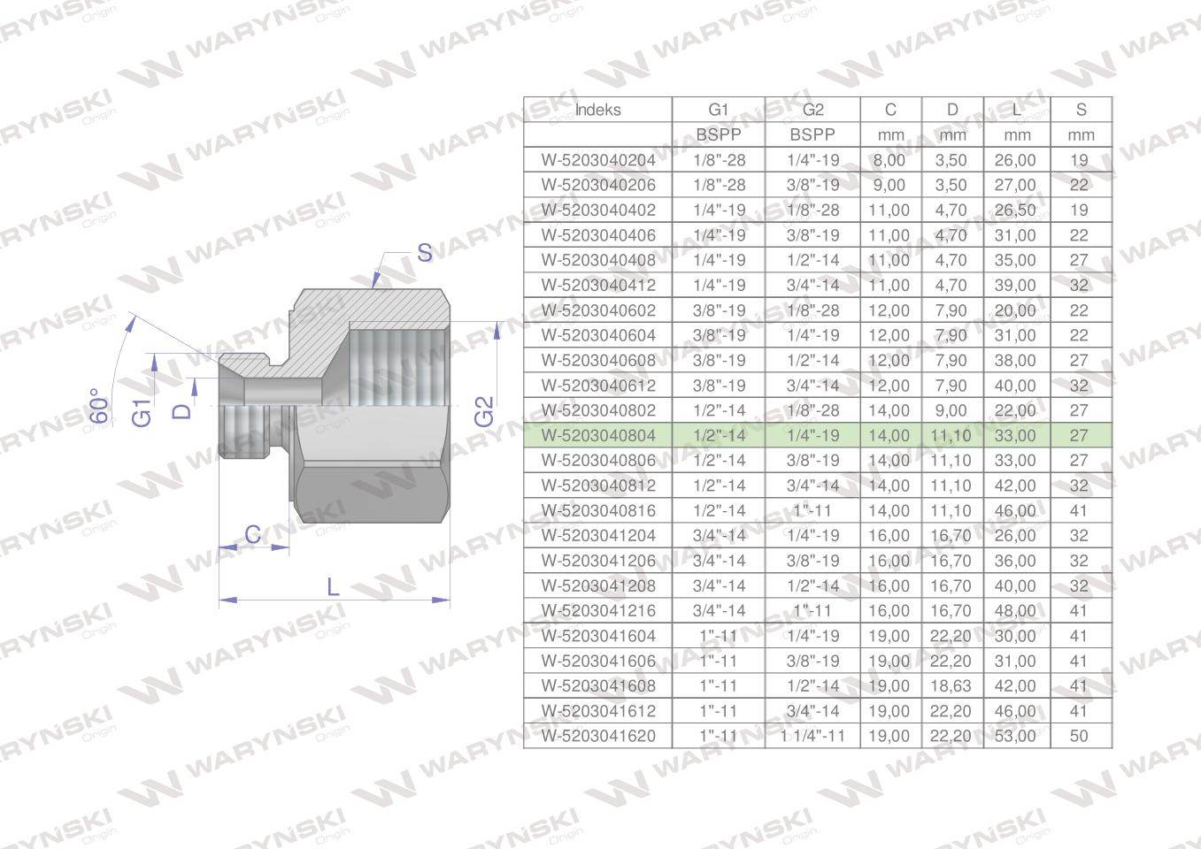 Tulejka różnicowa hydrauliczna calowa ab 1/2″gz x 1/4″gw bsp waryński. Elementy złączne zostały zaprojektowane i wykonane zgodnie z obowiązującymi normami, które szczegółowo opisują wymagania jakościowe i wymiarowe. Są kompatybilne z elementami złącznymi innych renomowach producentów hydrauliki siłowej.