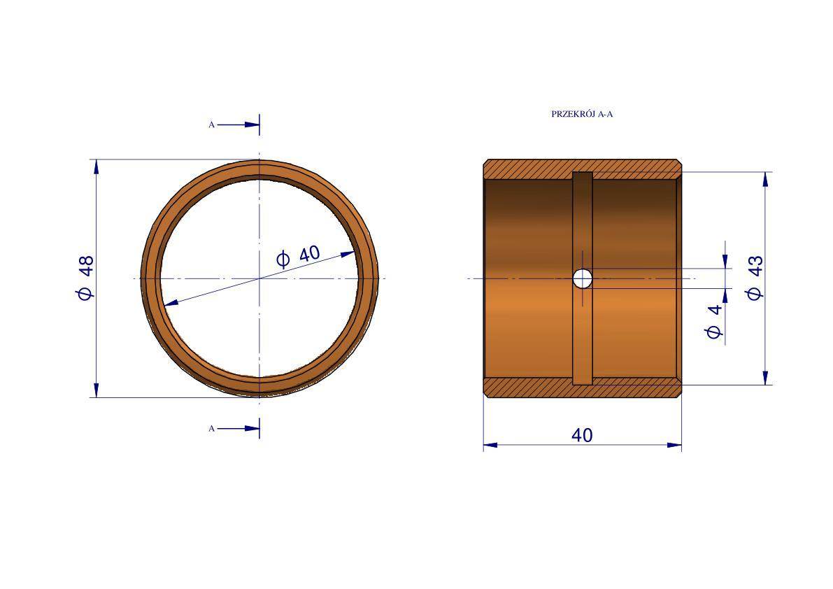 Tulejka zwrotnicy mosiężna 48x40x40 rozrzutnik
