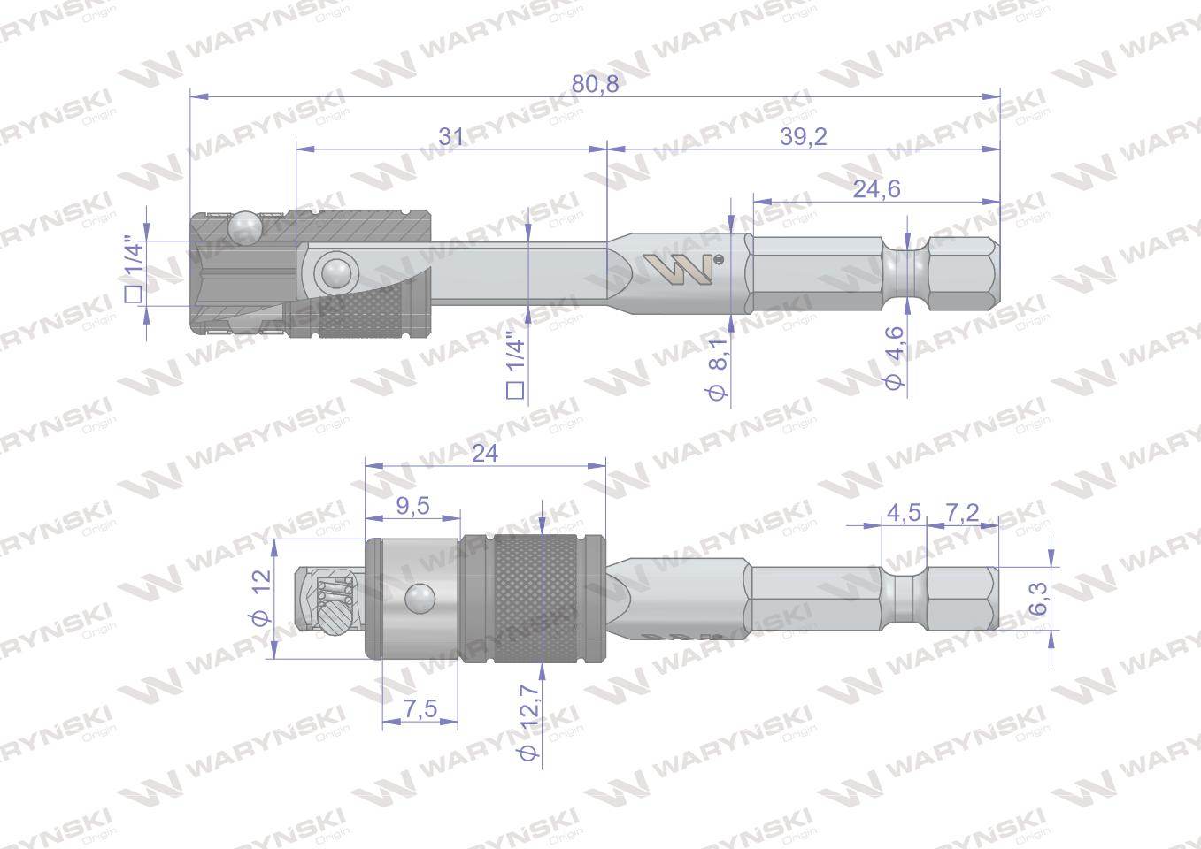 Uchwyt do końcówek wkrętakowych z końcówką do nasadek 1/4 waryński