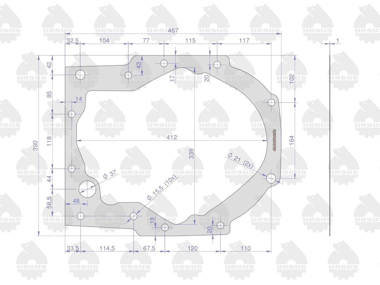 Uszczelka korpusu skrzyni pośredniej przekładniowej krążelit 1mm c-385 po 5 oryginał ursus