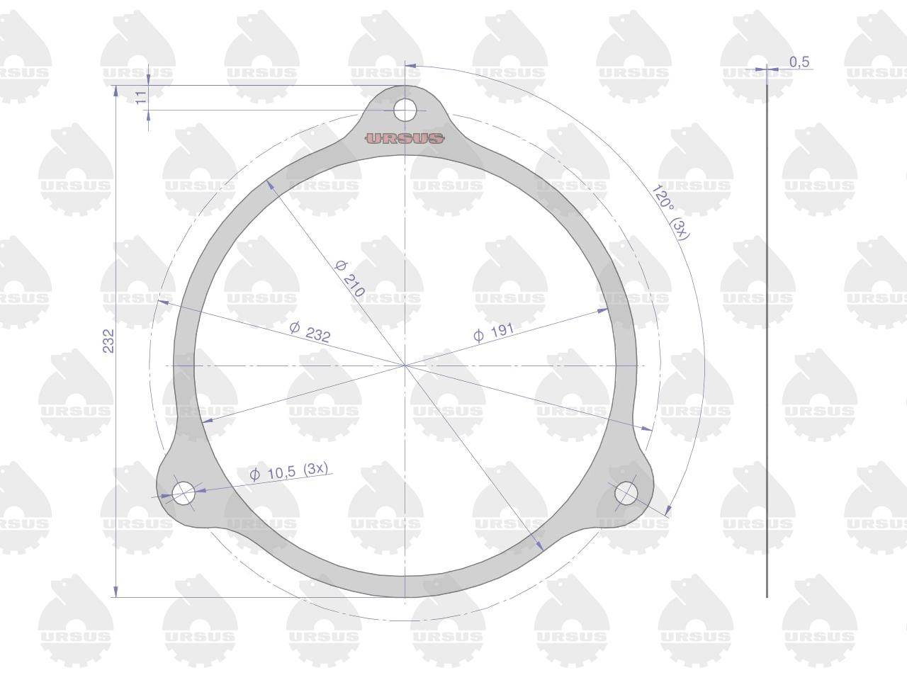 Uszczelka pokrywy mechanizmu różnicowego krążelit 0.5mm 50525060 c-360 po 5 oryginał ursus