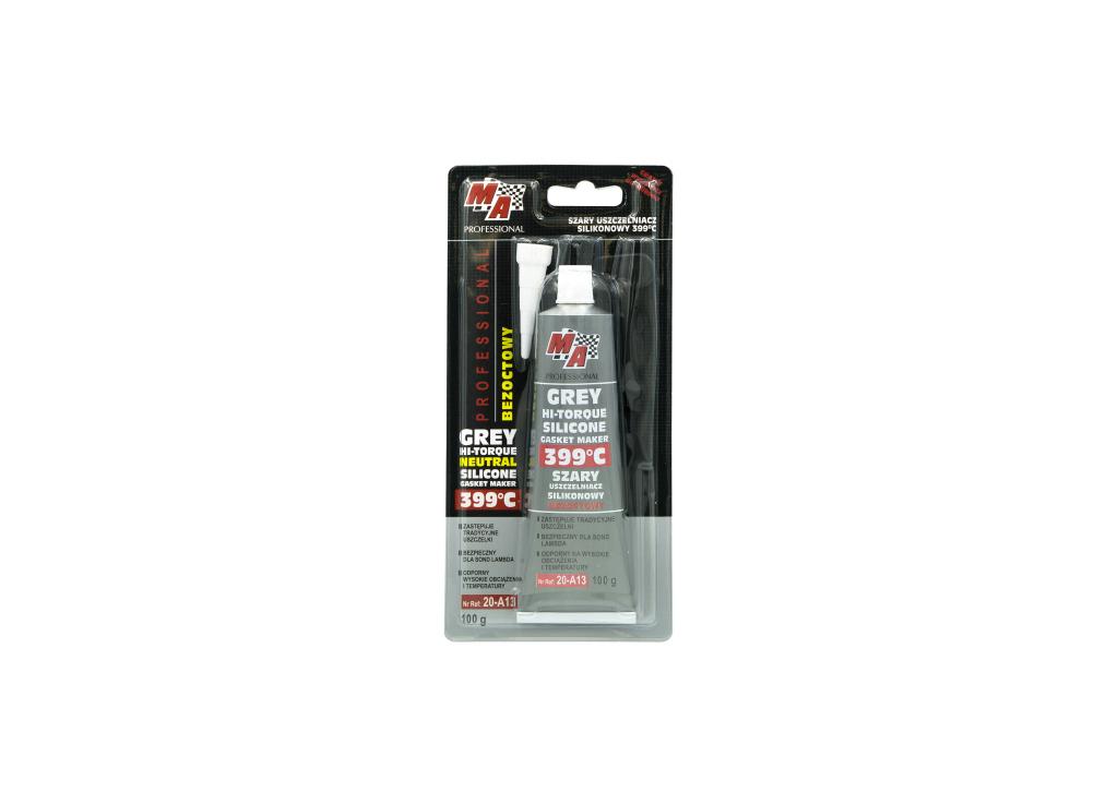 Uszczelniacz silikonowy szary 399°c-100g ma professional / zastępuje tradycyjne uszczelki. Bezpieczny dla sond lambda. Odporny na wysokie obciążenia i temperatury do +399°c. Bezoctowy.