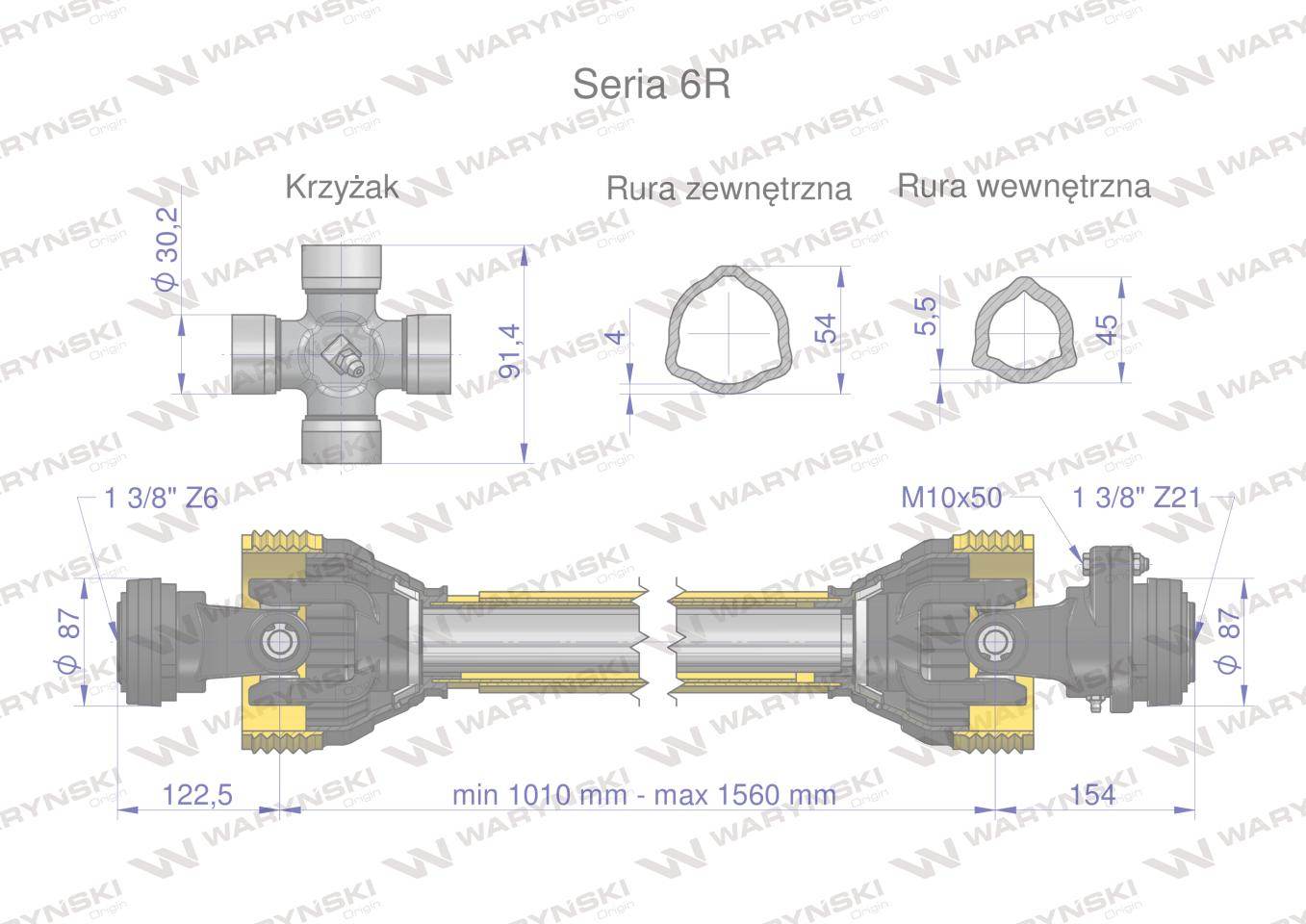 Wał przegubowo-teleskopowy 1010-1560mm 830nm sprzęgło z kołkiem z21 2500 nm ce 2020 seria 6r waryński