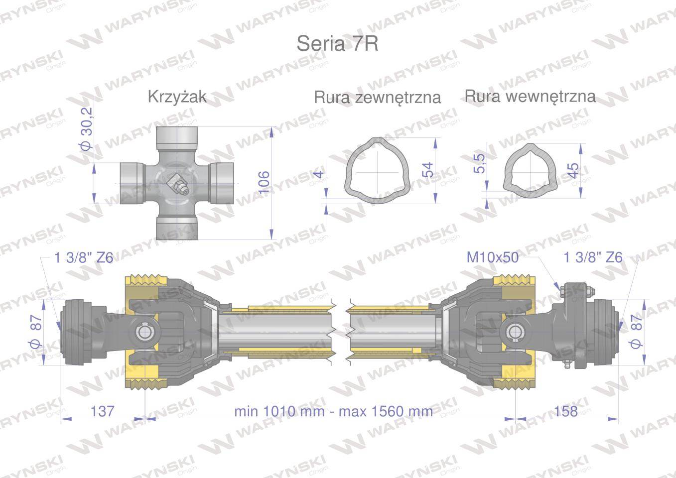 Wał przegubowo-teleskopowy 1010-1560mm 970nm sprzęgło z kołkiem 2200nm ce 2020 seria 7r waryński