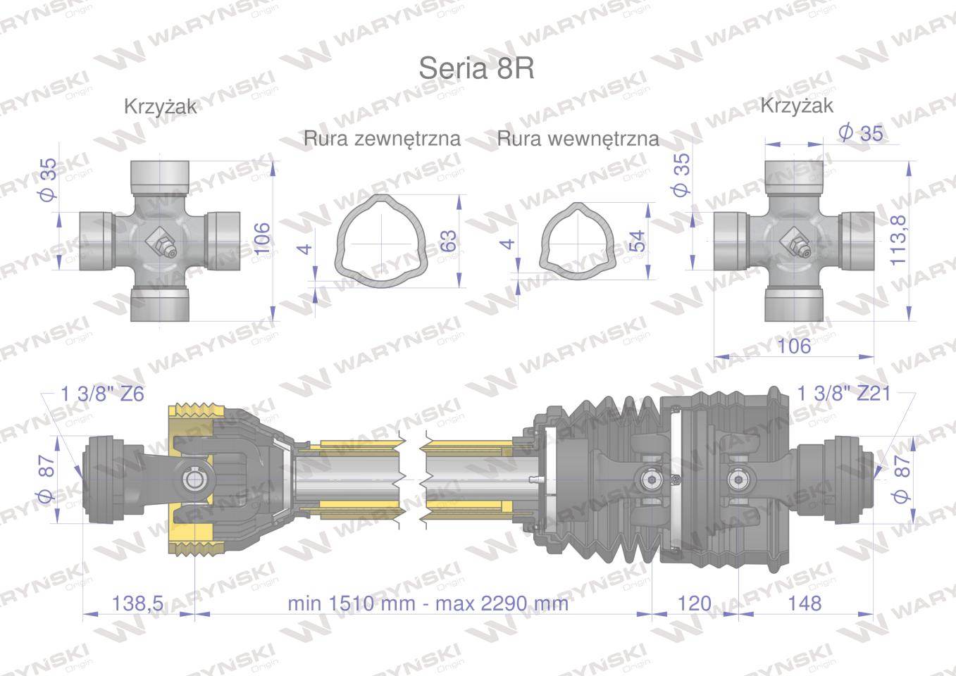 Wał przegubowo-teleskopowy 1510-2290mm 1240nm szerokokątny z21 ce 2020 seria 8r waryński