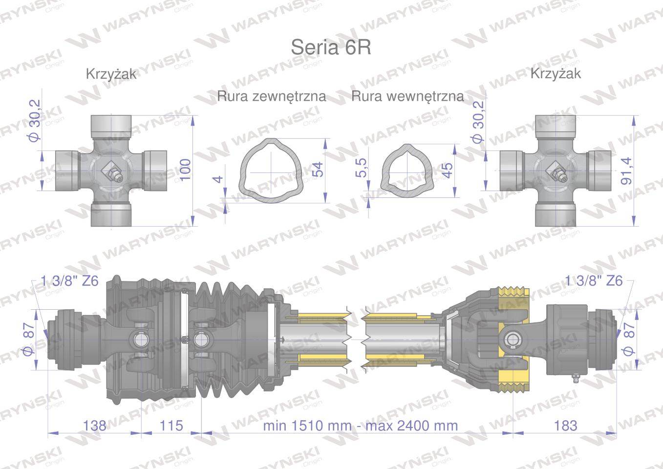 Wał przegubowo-teleskopowy 1510-2400mm 830nm szerokokątny dr.st sprzęgło jednokierunkowe ce 2020 seria 6r waryński