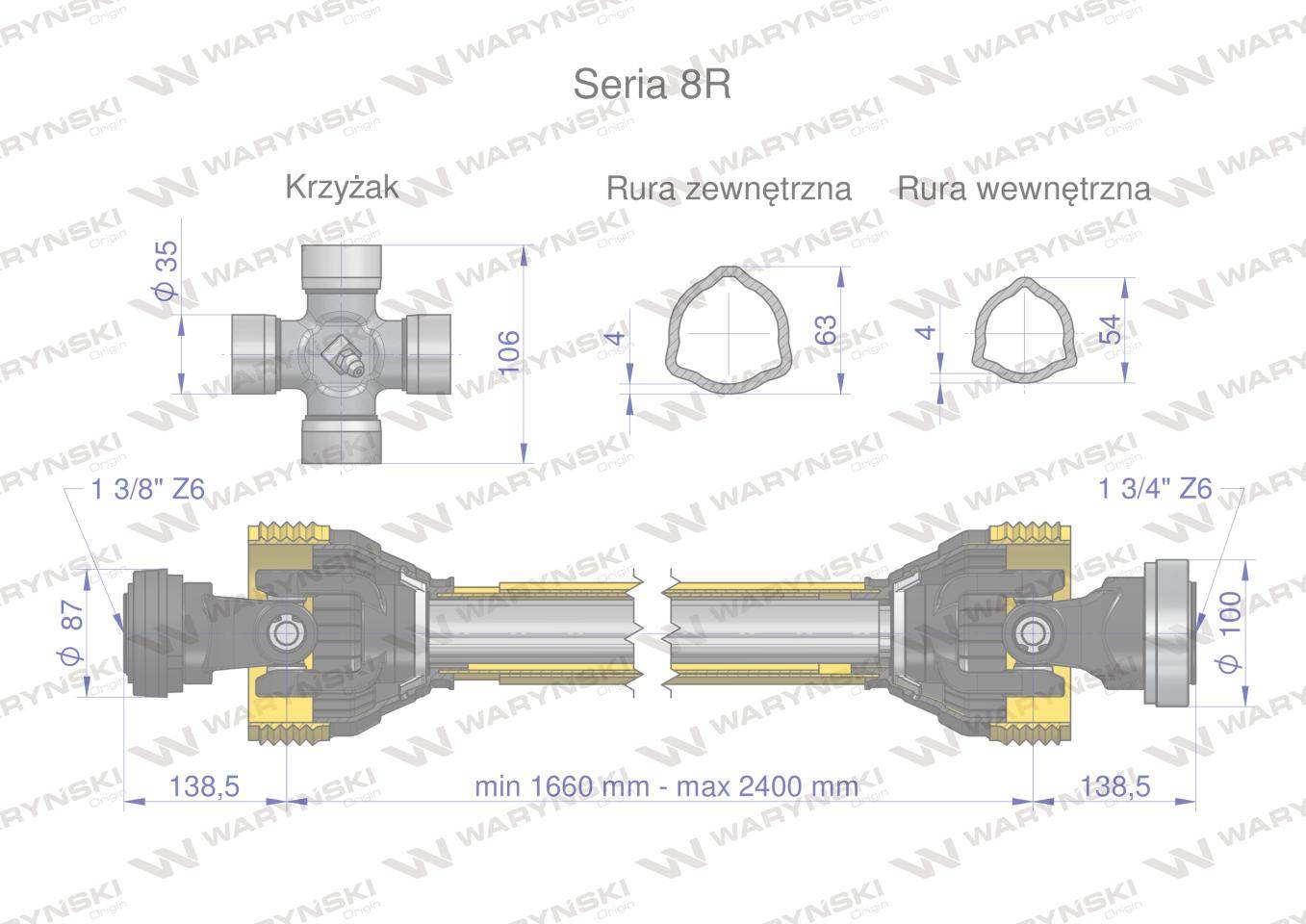 Wał przegubowo-teleskopowy 1660-2400mm 1240nm z6 1 3/4 ce 2020 seria 8r waryński