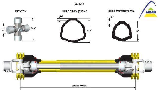 Wał przegubowo-teleskopowy 610-900mm 400nm 50230 ce seria 3 aksan