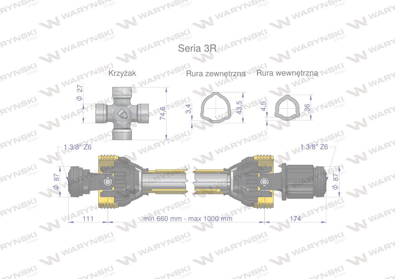 Wał przegubowo-teleskopowy 660-1000mm 460nm sprzęgło zapadkowe ce 2020 seria 3r waryński