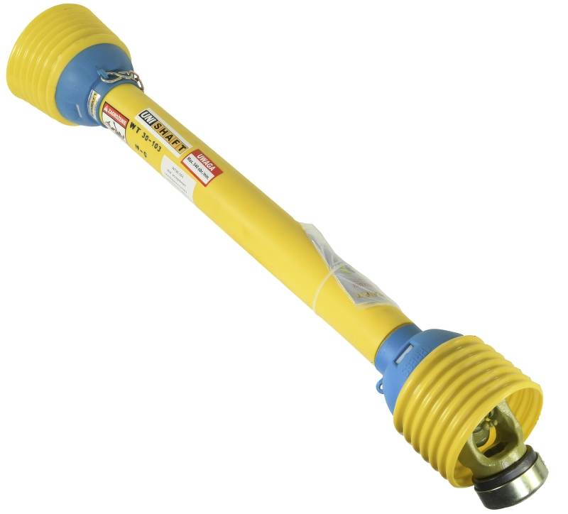 Wał przegubowo teleskopowy cytryna 350Nm, 810-1385mm, krzyżak 24×61, widłak zewnętrzny z pierścieniem szybkiego montażu sk. UniShaft