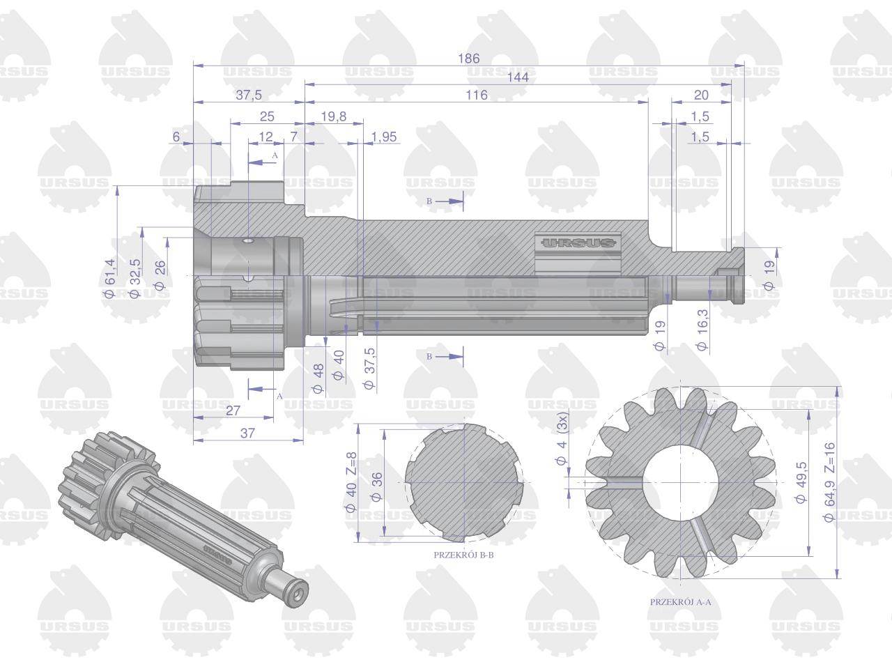 Wałek główny skrzyni biegów c-330 oryginał ursus