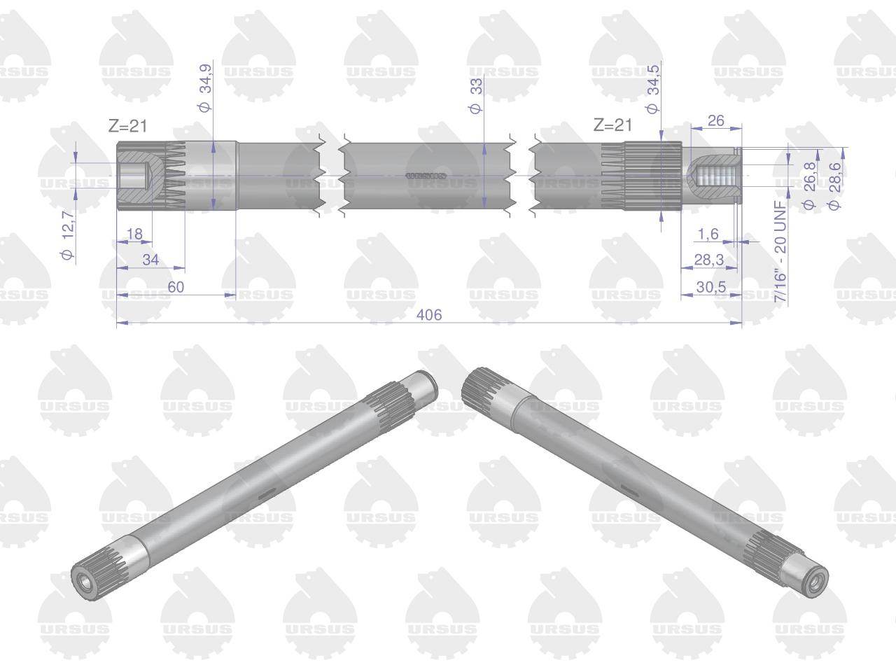 Wałek pierwszy wom mf3/mf4 21-zębów oryginał ursus