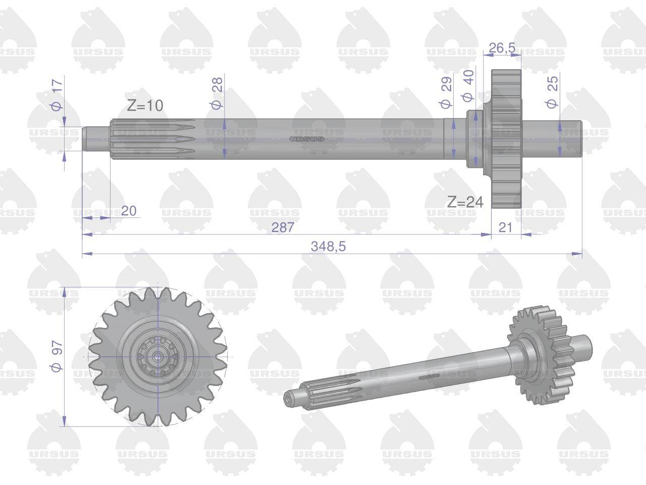 Wałek sprzęgłowy i-stopień gruby frez z-24/10 964925m3 mf3 oryginał ursus