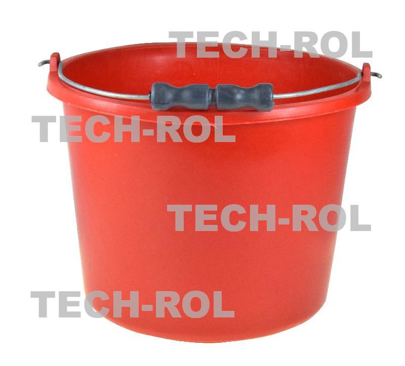 Wiadro plastikowe 12 litrów, czerwone; z plastikową rączką; Produkt standard