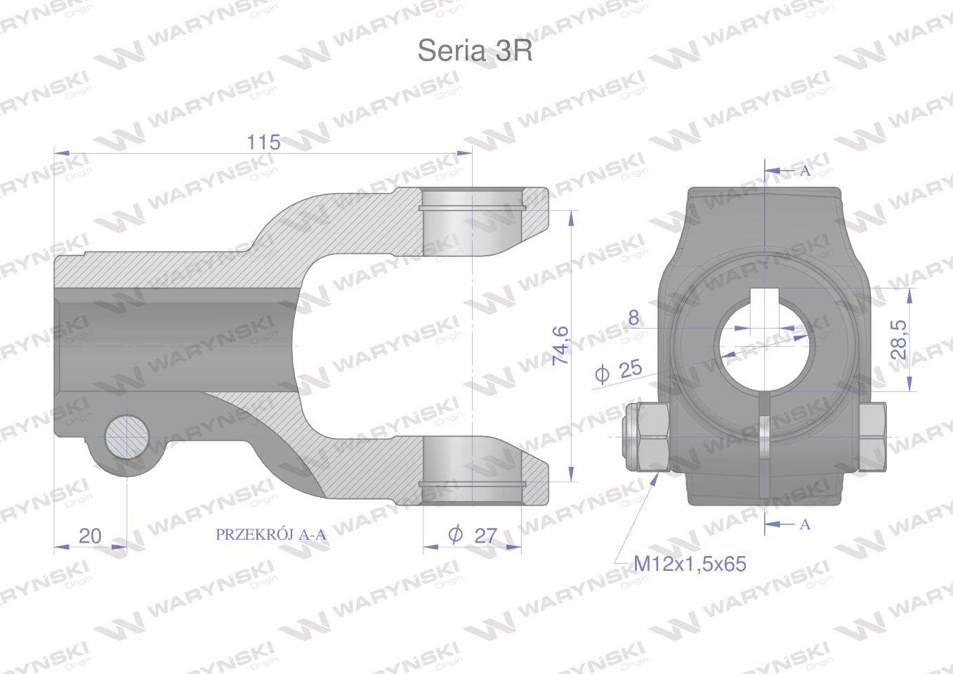 Widłak na wpust 8 śr.otw.25mm 27x74.6 seria 3r waryński
