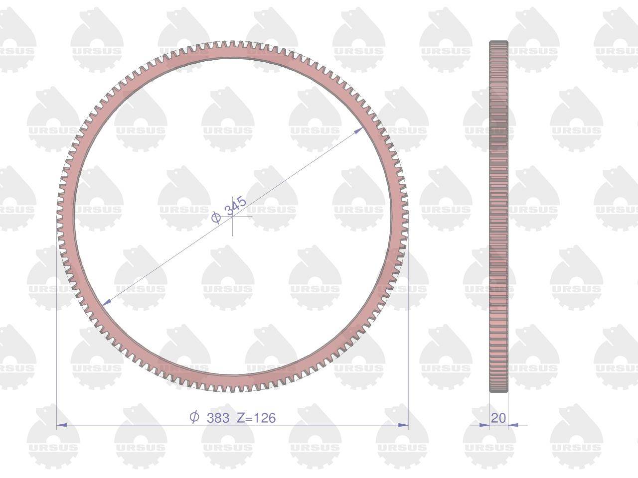 Wieniec koła zamachowego 126 zębów c-330 oryginał ursus