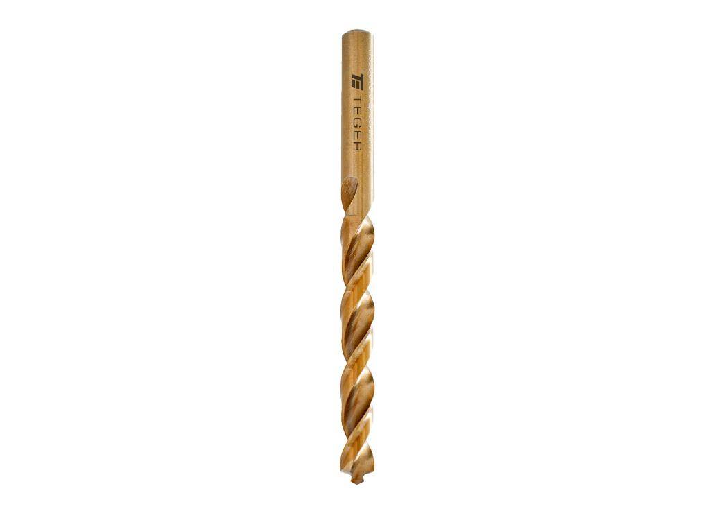 Wiertło do metalu kobaltowe – pilotujące marki teger to znakomite wiertło do wiercenia w stali stopowej i węglowej o wytrzymałości do 900n/mm2. Wykonane ze stopu wysokogatunkowej stali wzbogaconej o kobalt (~ 6% zawartości), dzięki czemu jest niezwykle wytrzymałe w czasie skrawania utwardzanych powierzchni stali. Wiertło przeznaczone jest do wiercenia w stali, stali kwasoodpornej, nierdzewnej i żaroodpornej, żelazie, żeliwie, mosiądzu, niklu, drewnie i tworzywach sztucznych. Dzięki specjalnej geometrii ostrza, oraz pilota, który umożliwia wiercenie bez punktowania wiertło to znakomicie sprawdza się przy wierceniu w rurach, czy owalnych kształtach. Specjalnie zeszlifowane boczne ostrza pozwalają na wycięcie okrągłego otworu o określonej średnicy z równymi brzegami. Dodatkowa powłoka tlenkowa na powierzchni rowków wiórowych gwarantuje doskonałe odprowadzanie urobku
