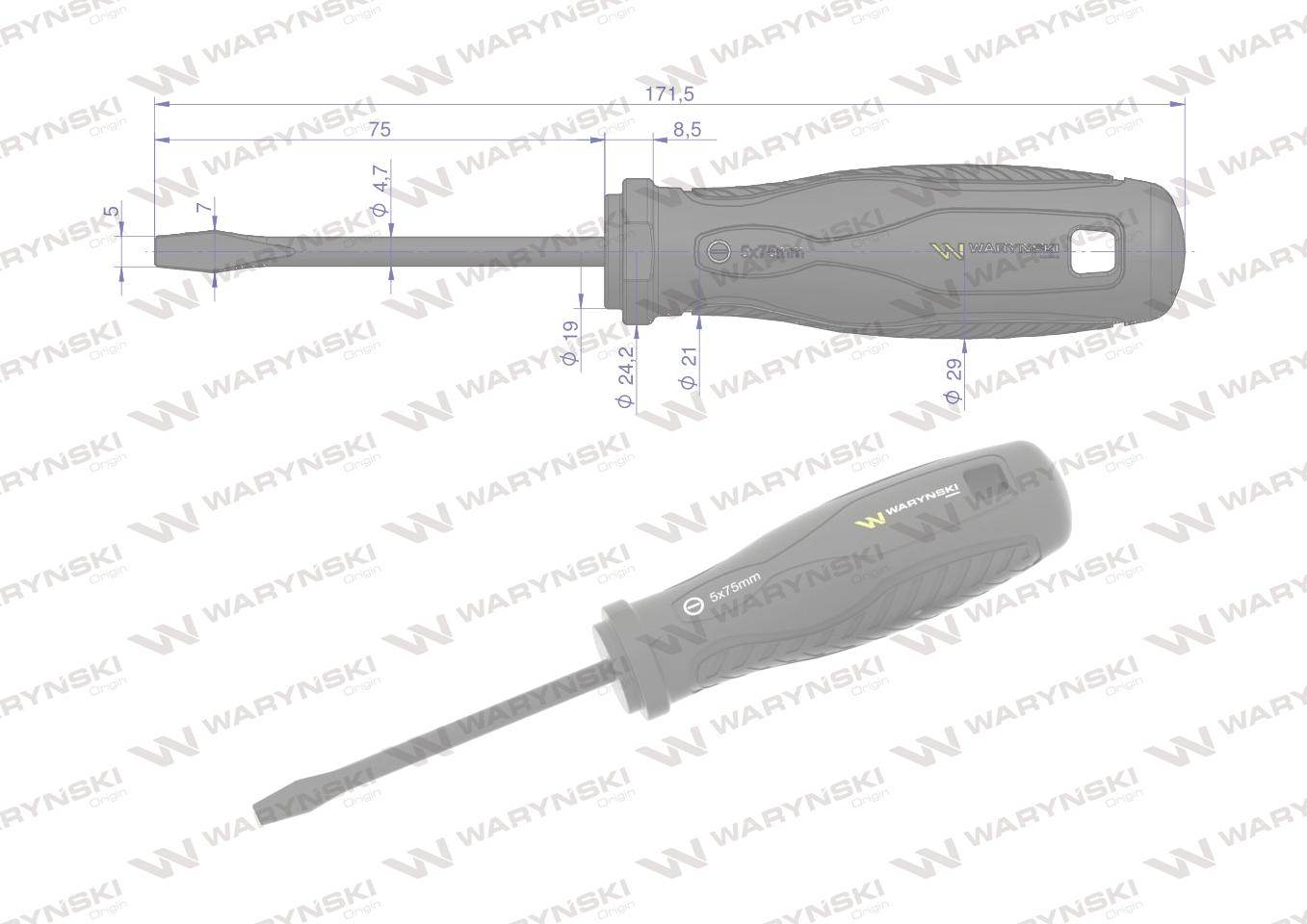 Wkrętak płaski 5 x 75 mm. stal svcm. Waryński