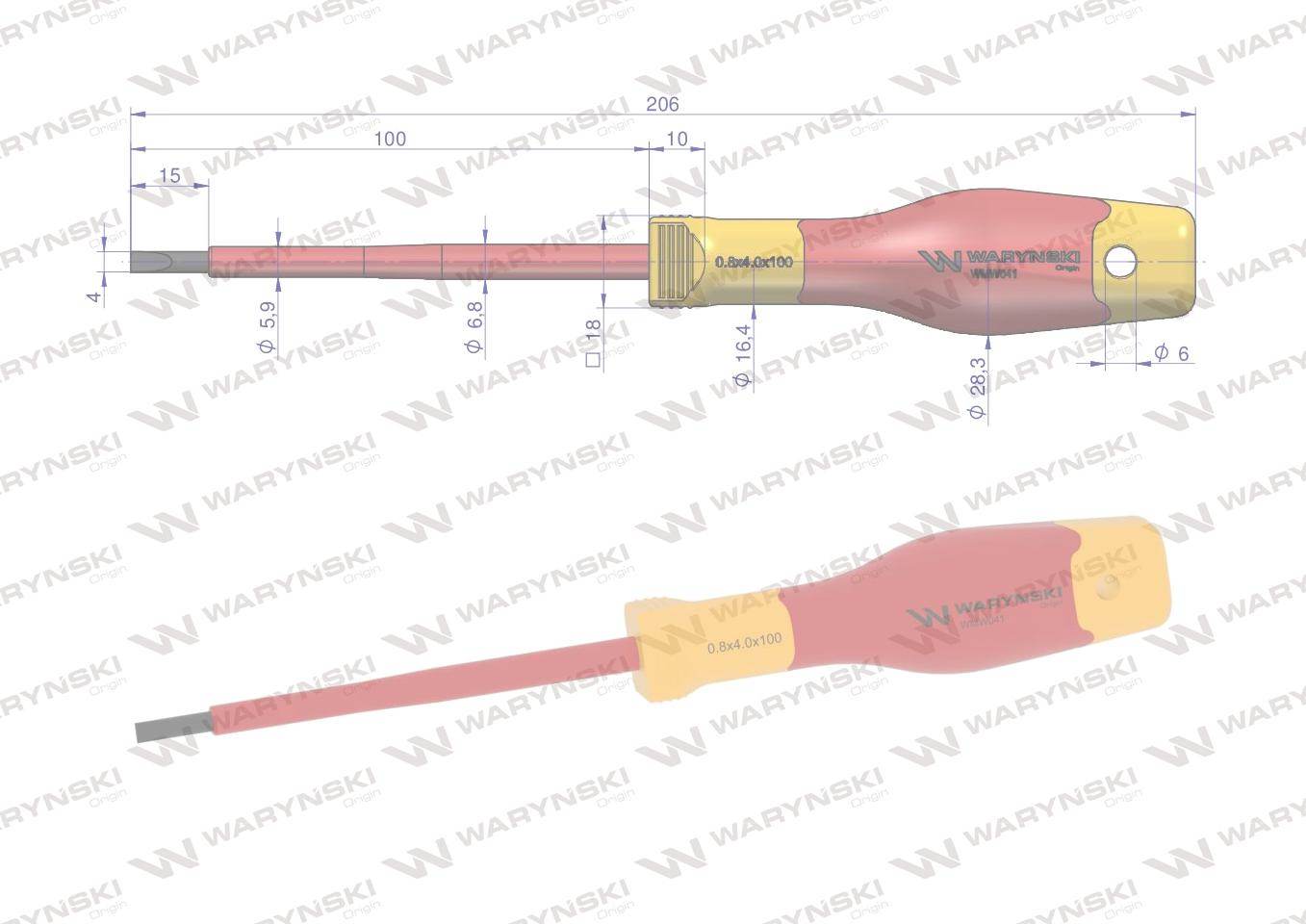 Wkrętak płaski izolowany 4 x 100 mm. Vde, waryński