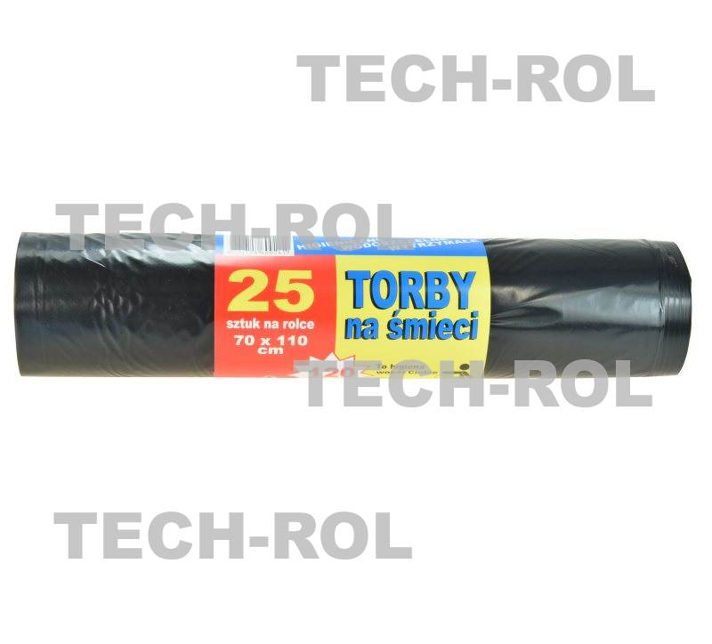 Worki na śmieci, odpady Mocne – 45 mikronów, czarne/niebieskie, pojemność 120 litrów, opakowanie 25 sztuk; Produkt krajowy