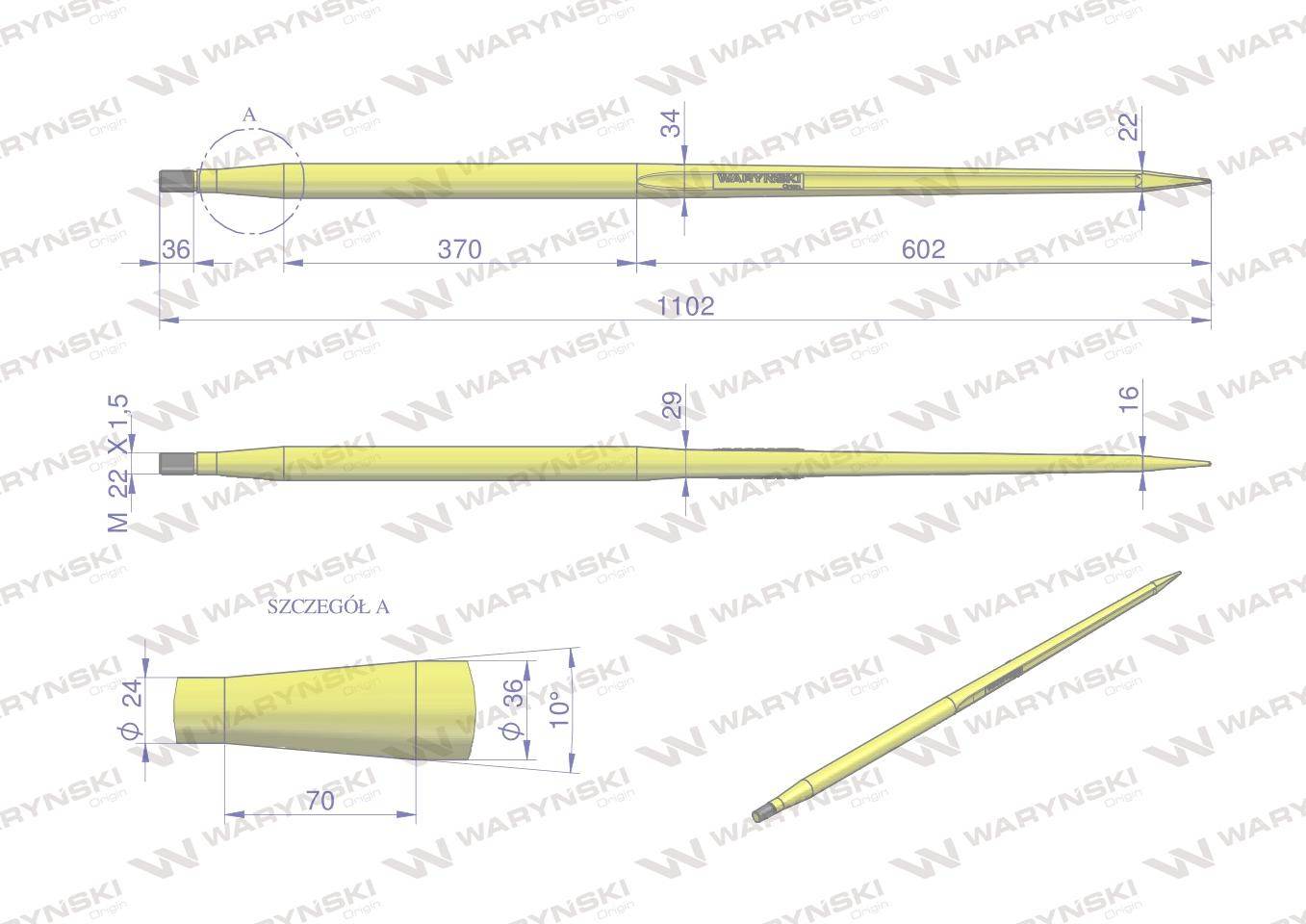 Ząb ładowacza uniwersalny prosty l- 1100mm 5193-rt1 tur waryński