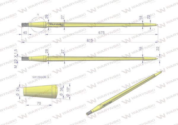 Ząb ładowacza uniwersalny prosty l- 810mm 5193-ft1n tur waryński