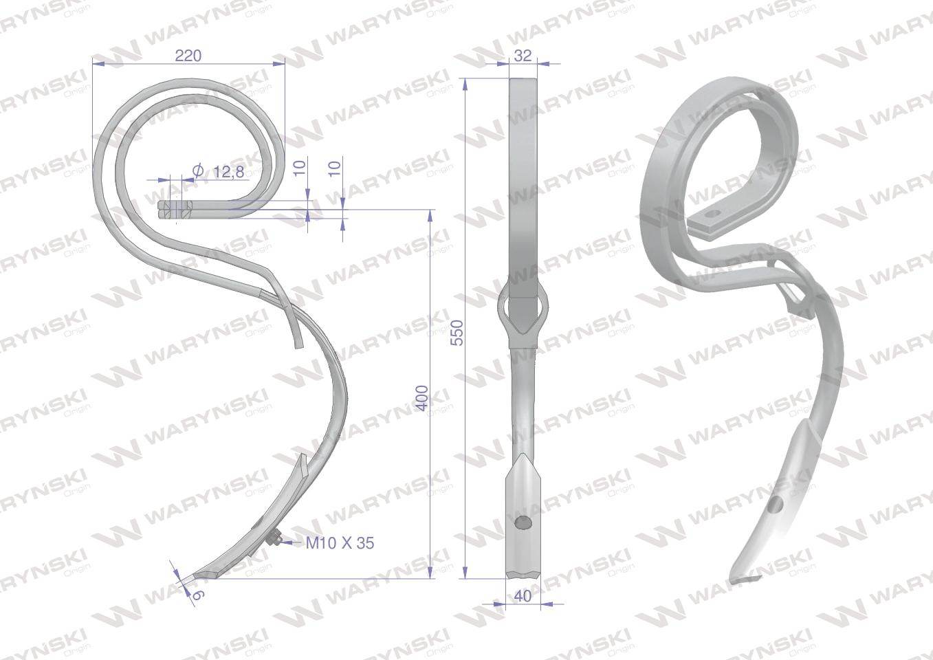 Ząb sprężynowy agregatu uprawowego wzmocniony waryński