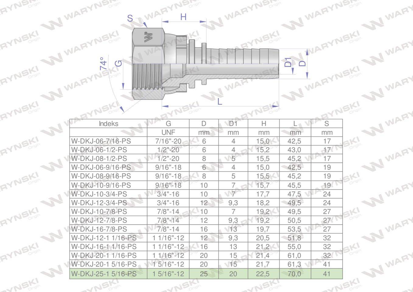 Zakucie hydrauliczne dkj dn25 1 5/16"-12 unf premium waryński