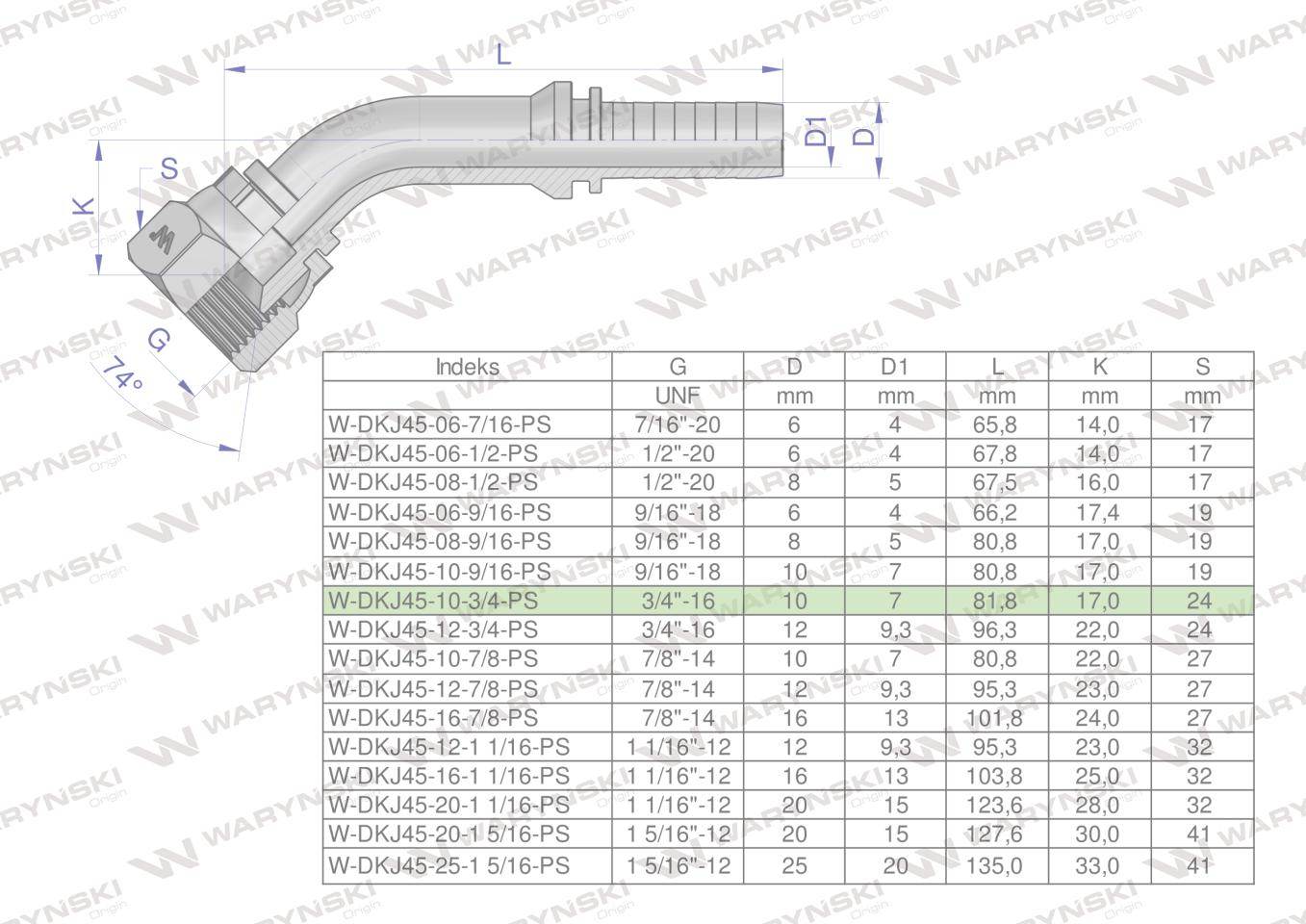 Zakucie hydrauliczne dkj45 dn10 3/4"-16 unf premium waryński 5szt