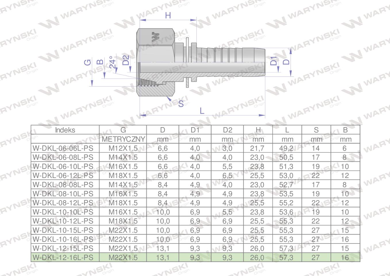 Zakucie hydrauliczne dkl dn13 16l m22x1.5 premium waryński 25szt