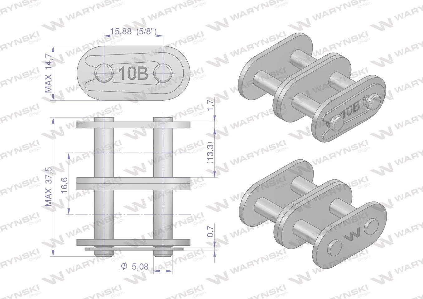 Zamek łańcucha prosta płytka z10b-2 r2 5/8 waryński 10szt