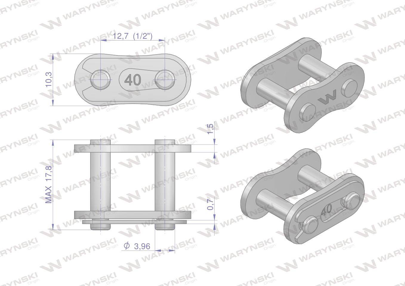 Zamek łańcucha wzmocnionego z08a-1 ansi a 40 r1 1/2 waryński 10szt