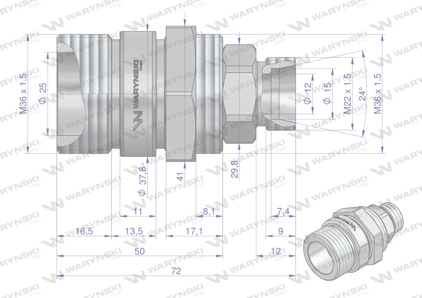 Zawór gniazdo m22x1.5 skręcane 50490020 waryński opakowanie 10szt)