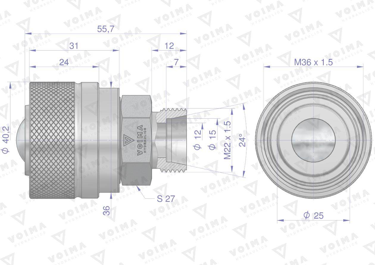 Zawór wtyczka zsr 50490030 m22x1.5 skręcane voima
