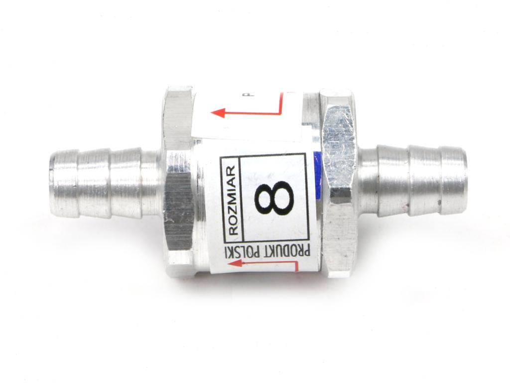 Zawór zwrotny układu paliwowego fi-8 mm, zapobiega cofaniu się paliwa do zbiornika.
